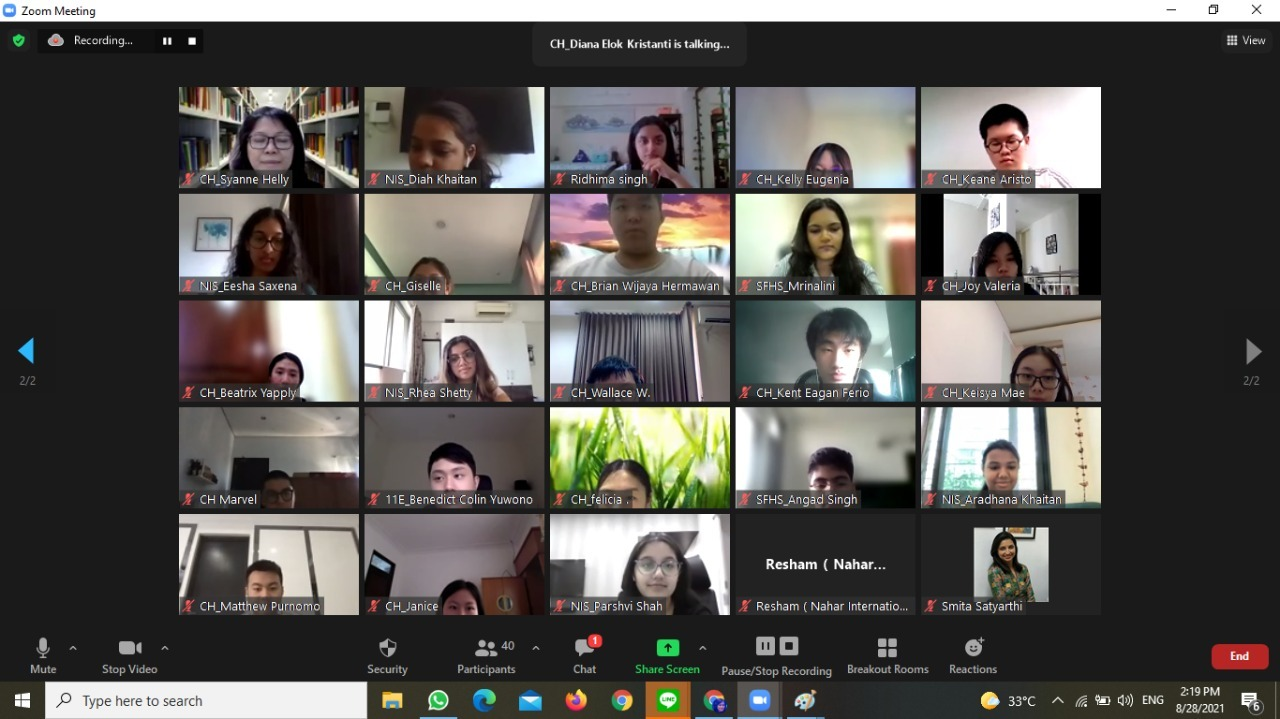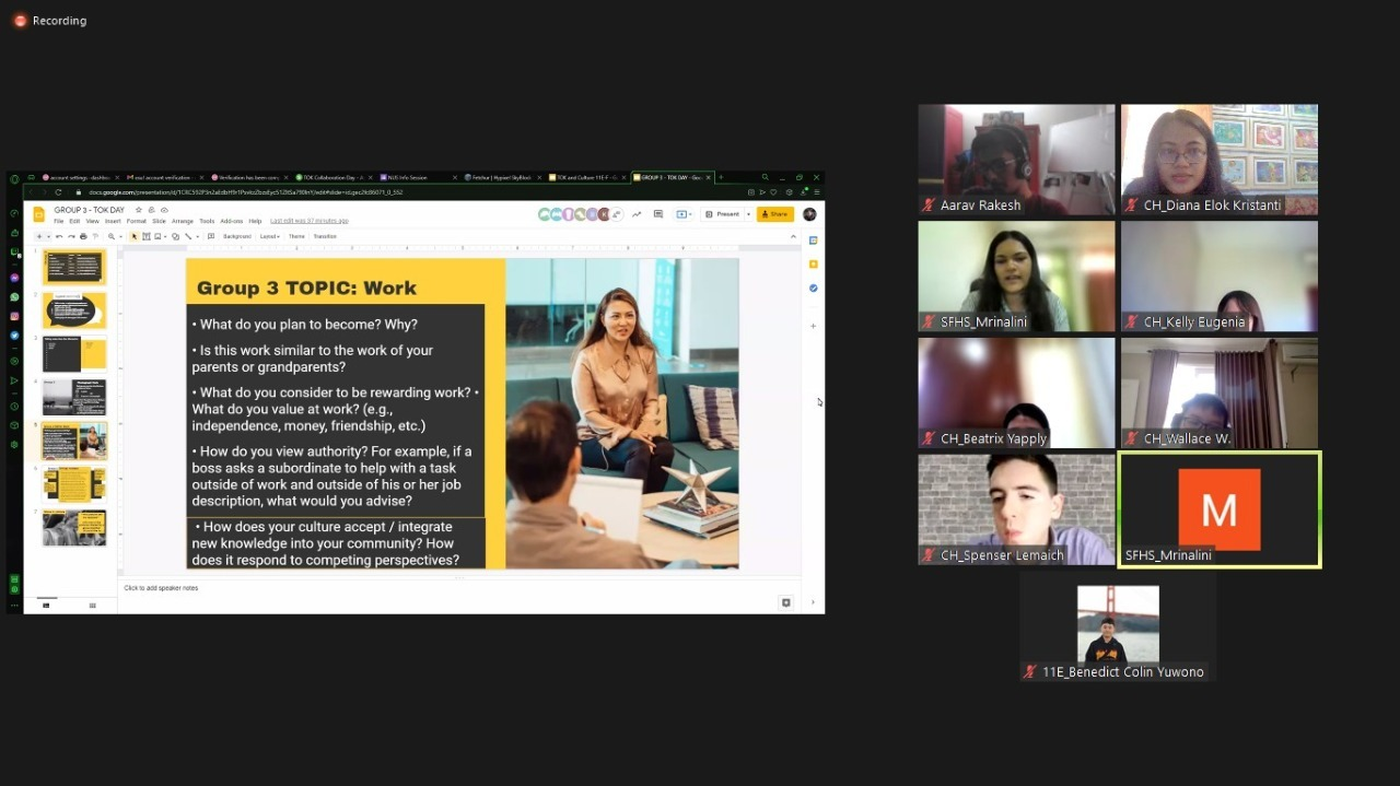 Theory of Knowledge is one of the core subjects of the IB Diploma Program which aims to develop students’ critical thinking. In order to enhance students’ learning, the TOK collaborative session was organised on 28th August, Saturday from 9:30 am to 1:00 pm in collaboration with Citahati Christian Senior School Surabaya, Indonesia and Nahar International School, Mumbai. The students and educators from three schools participated in the session. The collaborative session was based on the TOK key concept “Culture” and the core theme “Knowledge and the Knower”.