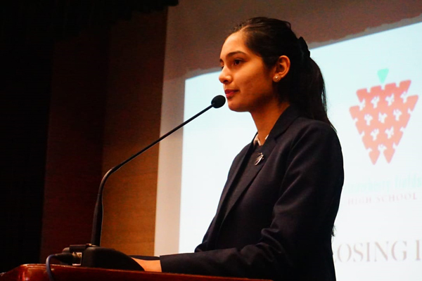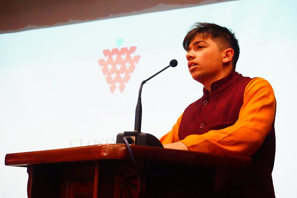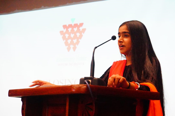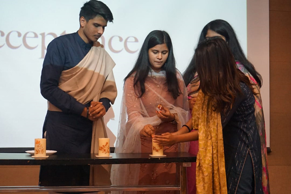 The traditional candle lighting ceremony then witnessed the students of class 12 sharing with their juniors values which they felt were necessary to have as students. The values given were resilience, ingenuity, acceptance, respect, and last but not least tenacity.