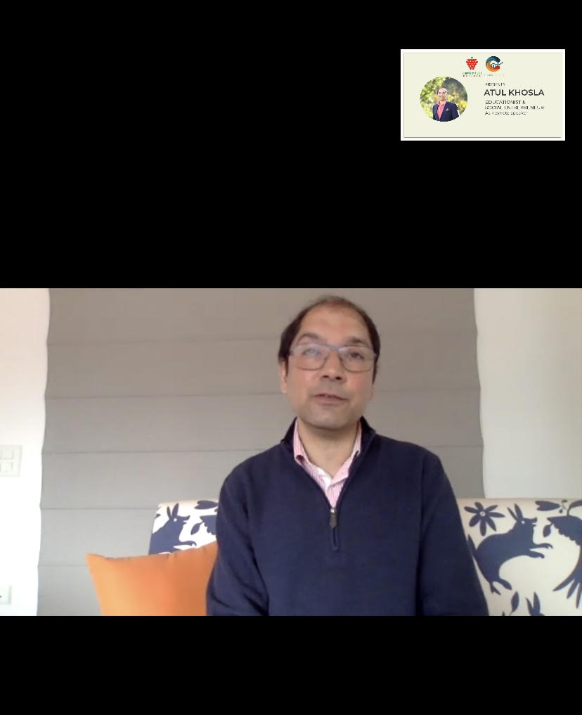 A mindset that seeks not to fear ‘fear’ itself and a will to delineate one’s own path is what makes an entrepreneur unparalleled to others in the business world, said Ashish Jhina as he delivered the keynote address at the much anticipated first online edition of the Strawberry Fields High School Commerce Fest on 21st November. A man who has experienced the nuances of corporate culture, broadened the audience’s horizons with his inspiring words. From co-founding NextDrop and JumboTail to working with the Boston Consulting Group, this notable alumnus of Stanford University has done it all. The novel event which aimed at testing how far the participants business acumen will take them, was organized by Aadidev Agarwal, Devashish Vij, Damanpreet Lobana and Ibaadat Bains from the commerce batch of grade 12.