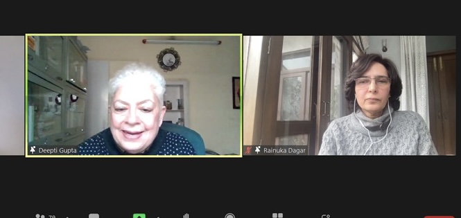 We had with us , Ms. Rainuka Dagar, an internationally acknowledged research professional, who is an alumnus of the Advanced International Programme on Conflict Resolution (PACS) Uppsala University, Sweden. Prof. Rainuka has researched extensively on gender inequalities and gender based violence, empirically examining the politics of gender constructs. We were also joined by Ms. Deepti Gupta, an esteemed Professor at the Department of English and Cultural studies , Panjab University. With a teaching experience of over 36 years, ma’am has worked with more than twenty universities on their curriculum redesign.