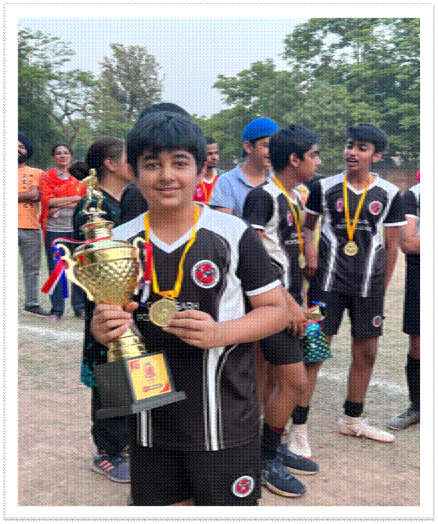 Abhiraj Chowdhary, a student of Class VIII with his invaluable contribution, persistence and team effort made our school proud by winning the Chandigarh Football League-Under 15 tournament under the aegis of Bhaichung Bhutia Football School. The tournament commenced on 4th June and was concluded on 25th June with 9 participating teams.